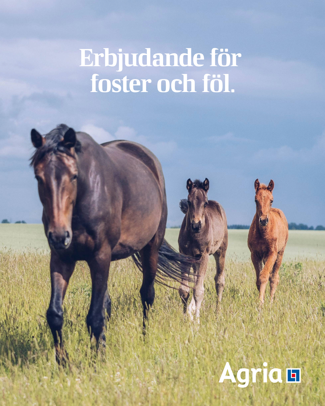Skydd till ditt sto och föl hela vägen genom ett samarbete med Agria som erbjuder dig som kund en kostnadsfri foster och fölförsäkring i samband med betäckning av ditt sto.